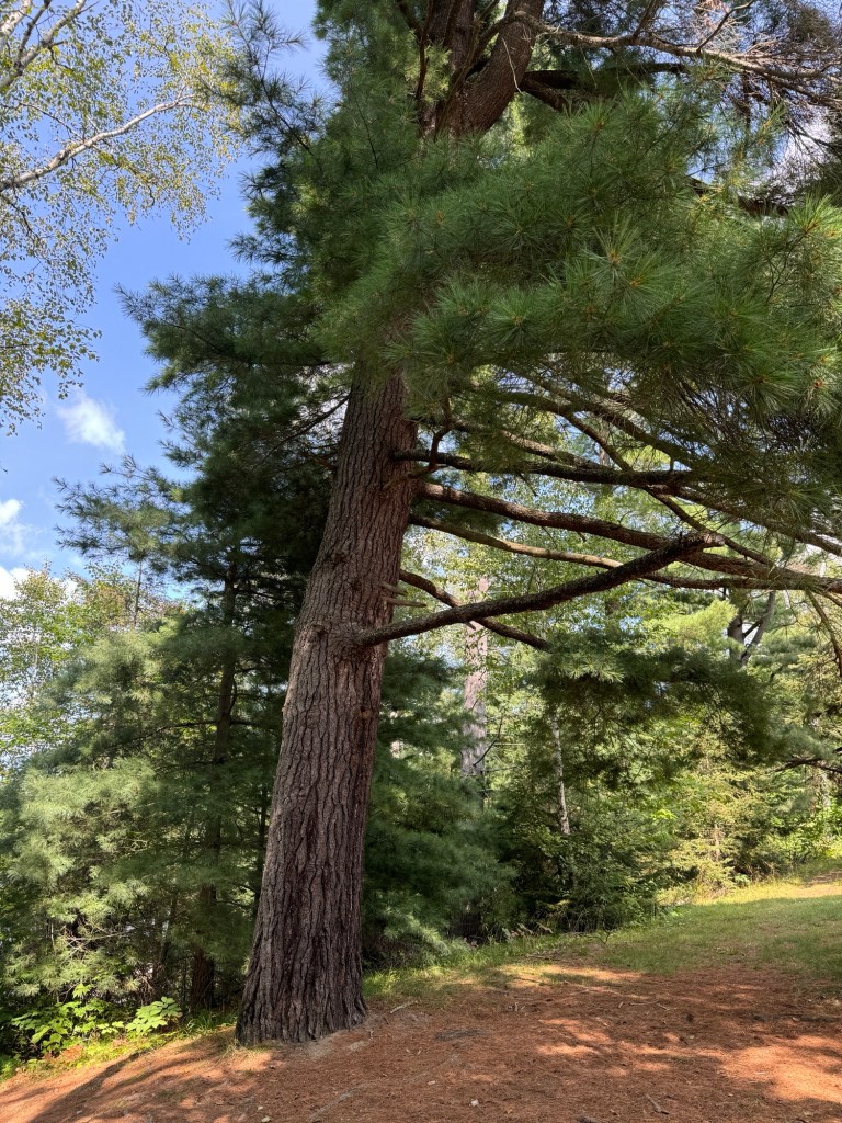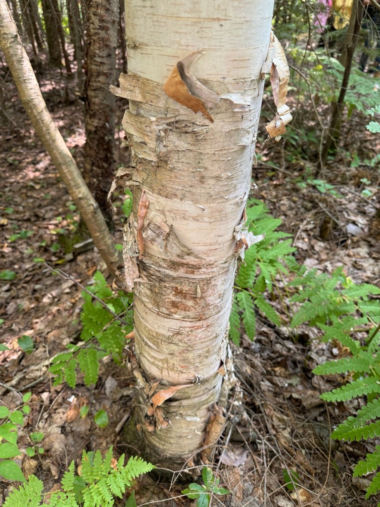 The woods are mainly birch and some pine trees. This forest was almost completely harvested during the lumber industry area. Thus, the reason for younger trees. A few of the white pines survived.