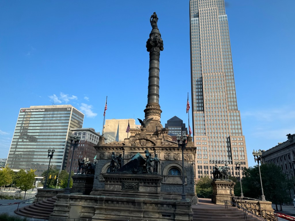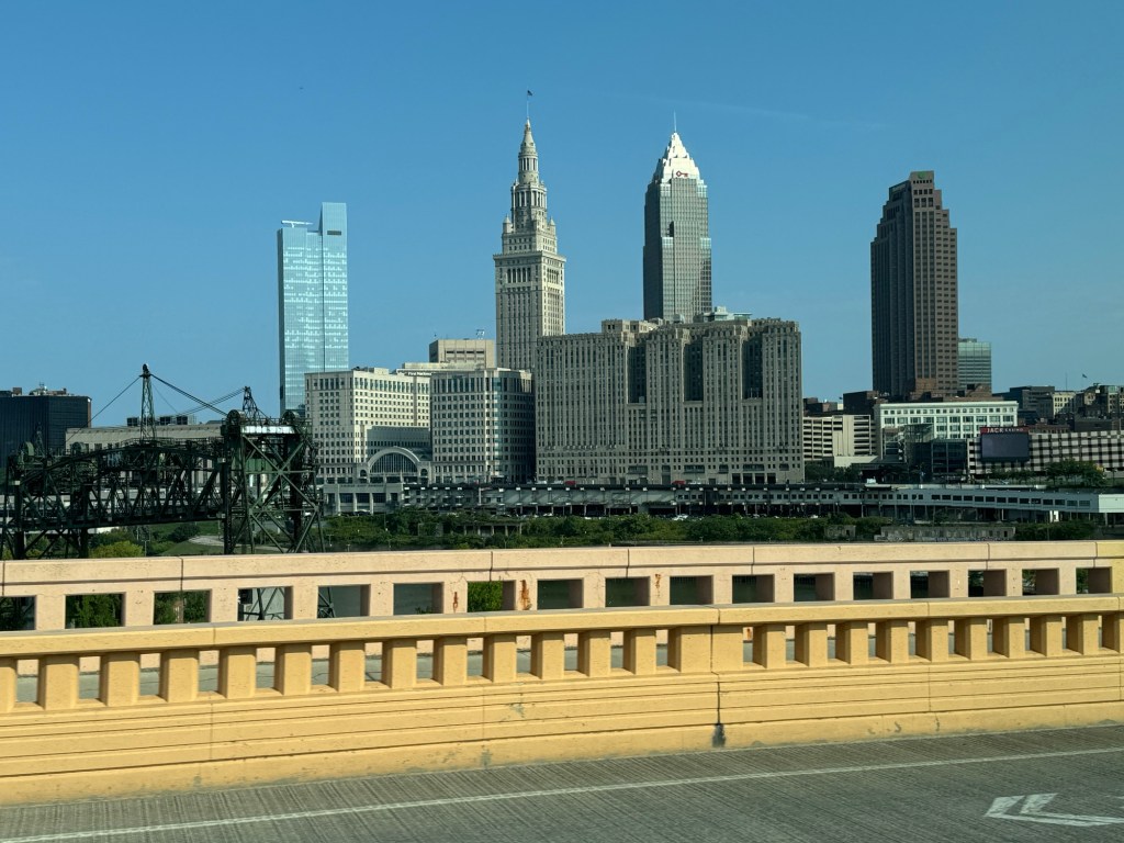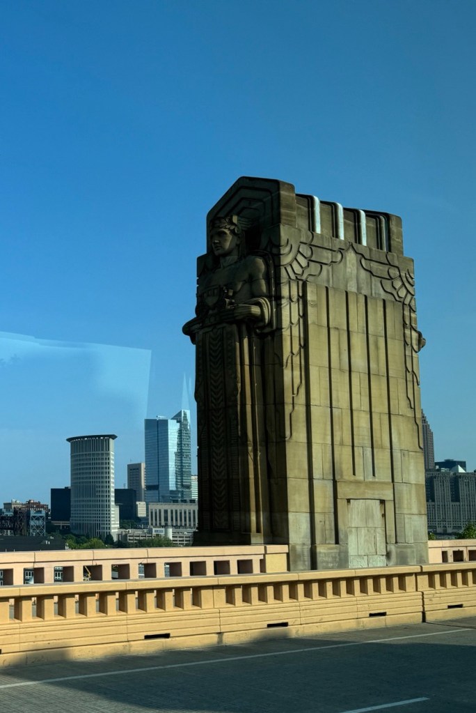 As we cross the bridge back to Cleveland, we catch a glimpse of the Guardian on the bridge for which the Cleveland Guardians are named (formerly Cleveland Indians). The Progressive Stadium where the Guardians play is just on the other side of the bridge.