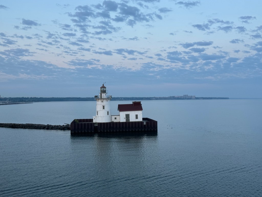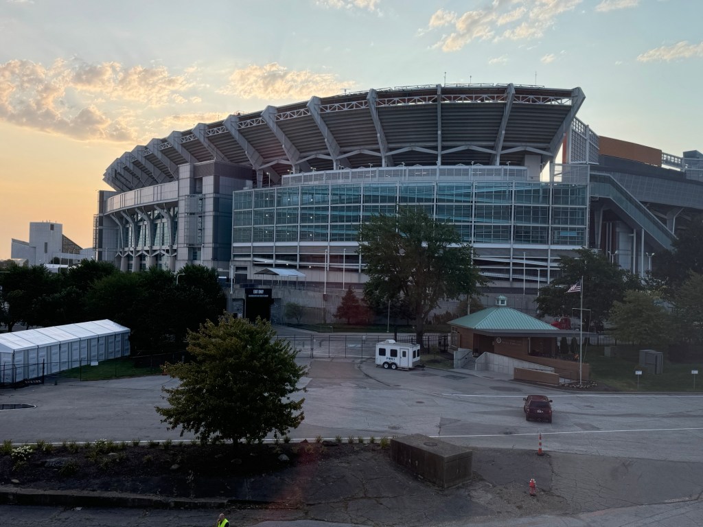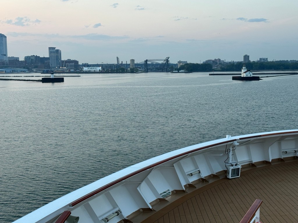 Our ship sails into the port around 7:00 AM. Beautiful morning, a little hazy but warm. The ship docks right next to the Cleveland Browns stadium.