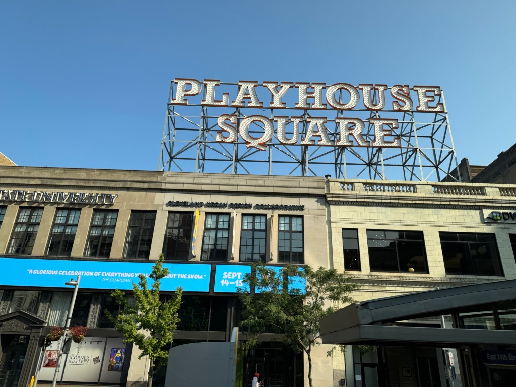Then there is the Playhouse Square. There is a chandelier hanging in the center of the street – sorry, couldn’t get a picture out the bus window.