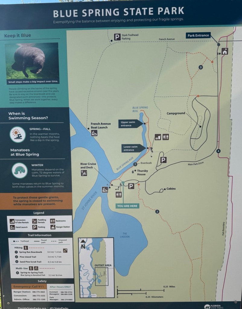 Central Florida truly is “the real Florida.” Many different parks and preserves along various waterways. The main river in this area is the St. John’s River. Plenty of interesting places to see along this river and Blue Springs State Park is definitely one to visit. During the Spring, Summer and early Fall, people come here to swim in the warm water. In the Winter, the Manatees come here to swim. There is also the Thursby home furnished with period items from the time when they settled along the Blue Springs. Tours are available.