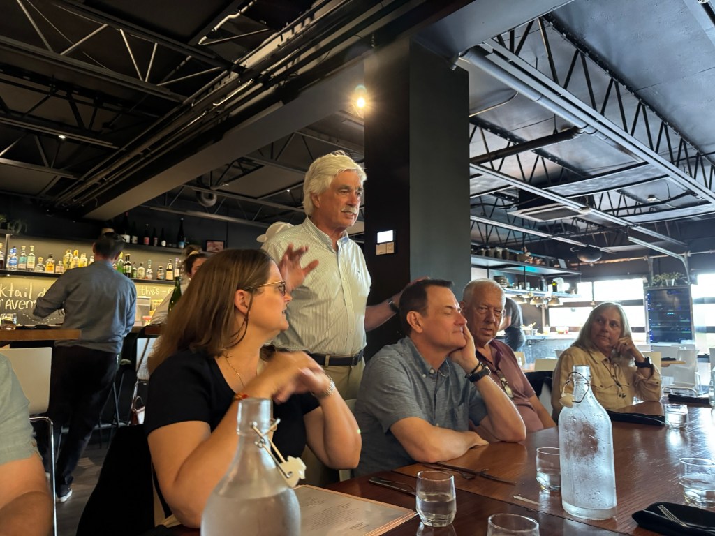 The group gathers for a bit of a wine tasting and conversation before we pile back in the van to head to dinner at a local restaurant. Don’t forget the vitamin patches!