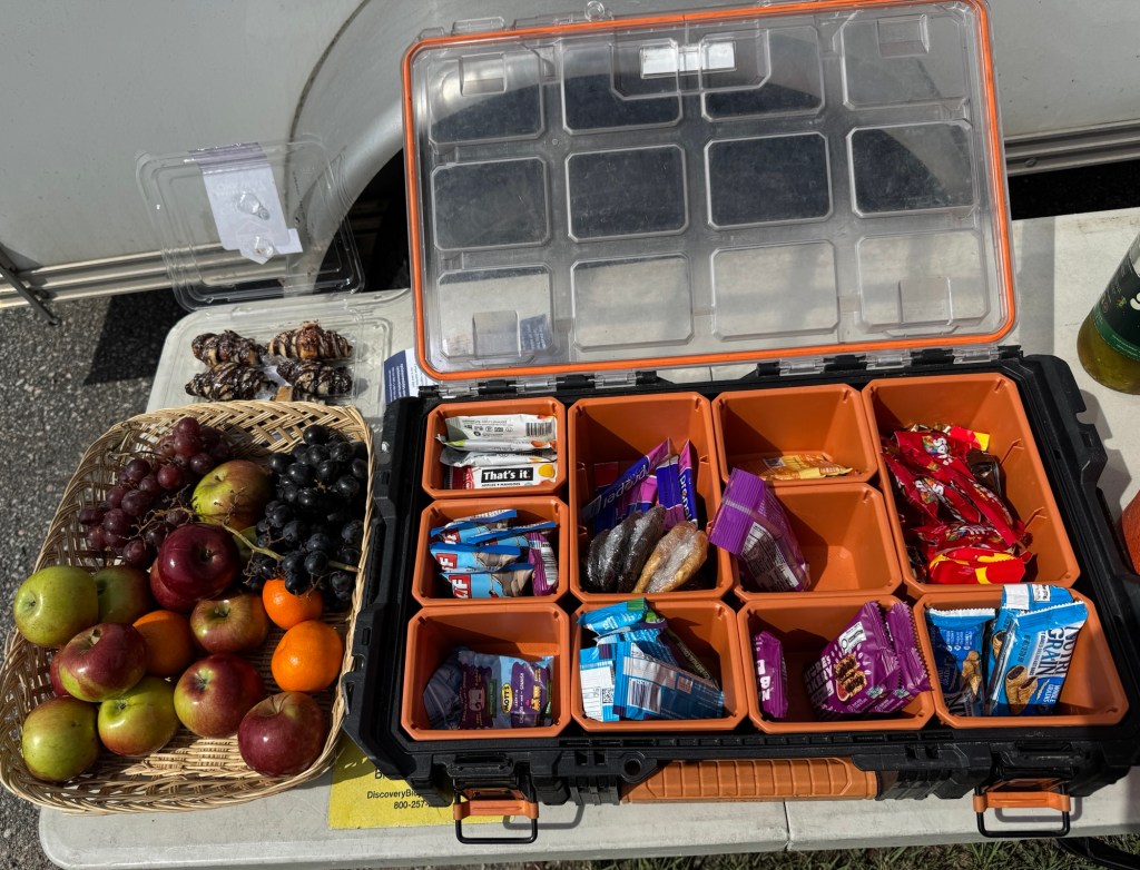 We arrive for another planned stop at the train station we were at yesterday in the rain – Labelle. What a difference a nice day can make! Very busy! Snacks are always waiting for us.