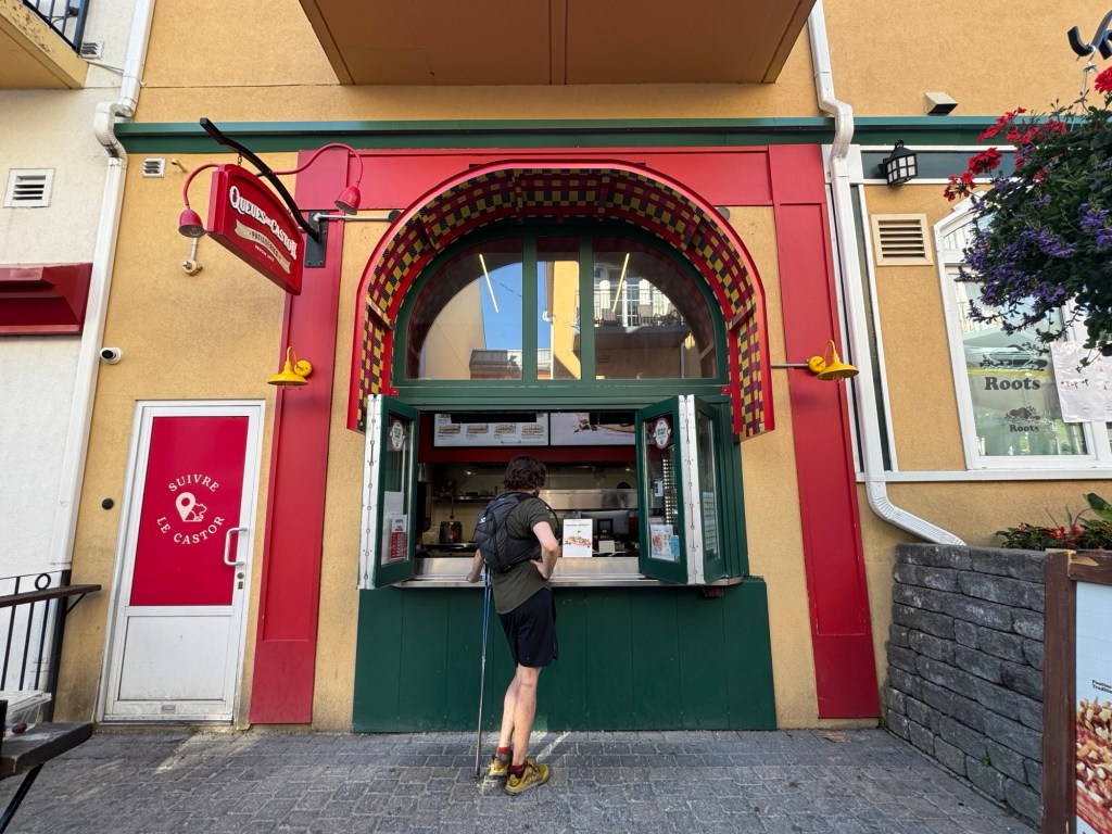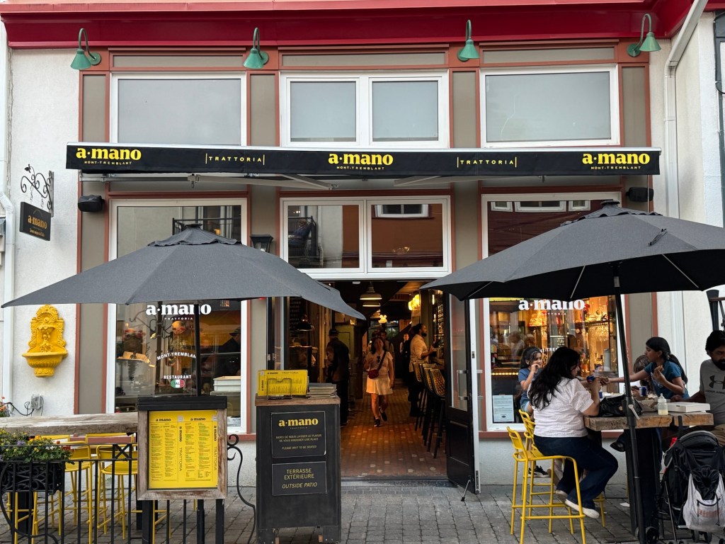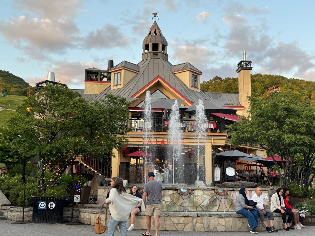 Back at the beautiful hotel, everyone takes the few hours before dinner to relax. Some in the pool, some take a nap, and some just relax in their room. We meet up in the hotel lobby and walk to the ‘downtown’ Mont Tremblant just outside the back of our hotel. It’s a quaint area with lots of shops, restaurants and amusements such as bungy jumping, gondola rides, etc. Megan is checking things out!