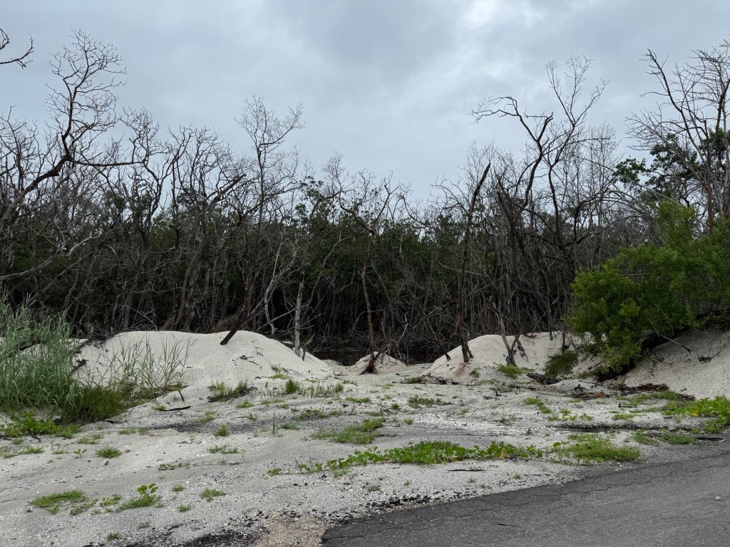 The road was definitely damaged from the storm surge. Riddled with pot holes to swerve around. On one side of the road are parking areas and the other side is the mangrove swamp. Again, it is clear there was major damage here.