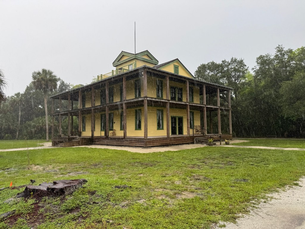 Next stop on my Sunday touring is the Koreshan State Park. By now, the rain is coming down in buckets but I am not deterred. One advantage, no one is at the Entrance Gate so you just drive in and have the entire place to yourself. Due to the inclement weather, my exploring was limited. Yet, my curiosity did get me out of my car to walk a little of the National Historic District within the park.