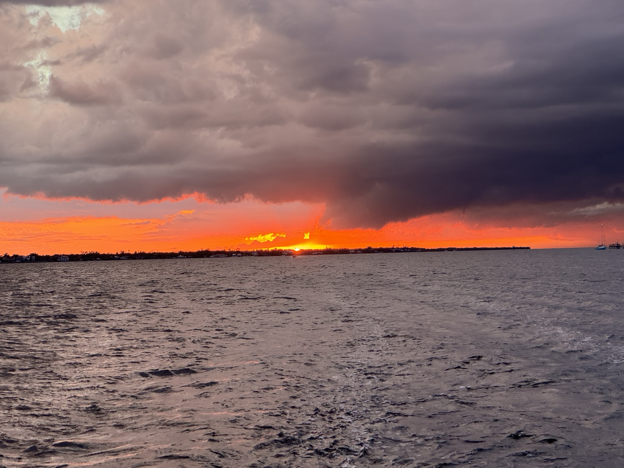 The weather did not disappoint – sunny with some clouds, a storm on the horizon, an unexpected waterspout, and a glowing red sunset.