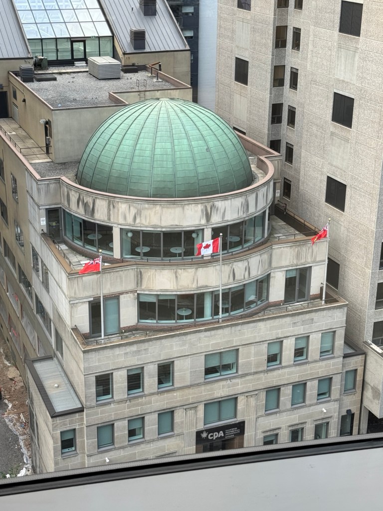 Lots of old and new buildings intermixed. The hotel is right across from the Chartered Professional Accountants of Ontario building which was original built in the 1950’s as the Ontario Hydro-Electric Commission – looks like a government building!