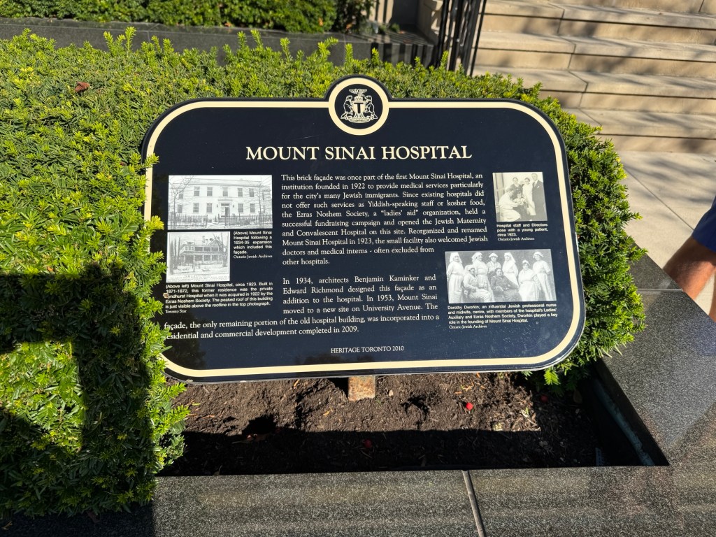 I notice a building with a history plaque in front so over I go to take a picture. It was the Mt. Sinai Hospital opened in 1923. While my sister waits for me on the other side of the street, two ladies run across the street and one tells my sister, this is the hospital where her father was born. Glad there are Canadians being tourists as well!
