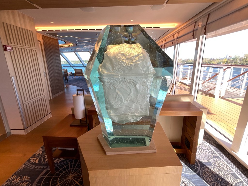 The day is leisurely and easy to find a few places to sit and read a book until dinner. This piece of art is quite interesting as is all the art on this ship.