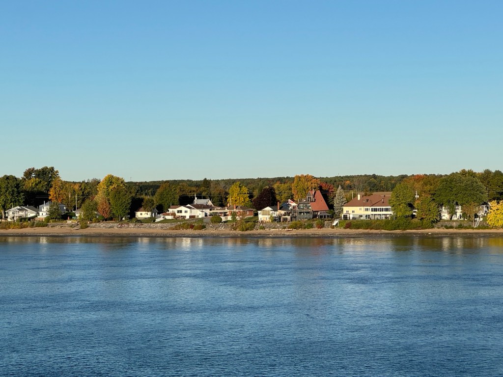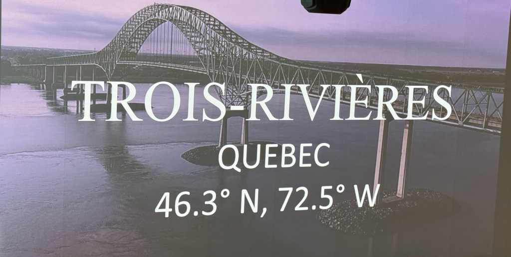 Last night, our ship was delayed transiting through locks 6 and 7 which resulted in our schedule being changed this morning. The ship’s arrival time at Trois-Rivières has been changed from 8:00 AM to 11:00 AM. This morning, I am just enjoying the sights along the shore. Compared to yesterday, much more populated and light industry. This city is halfway from Montreal and halfway from Quebec City along the St. Lawrence Seaway.