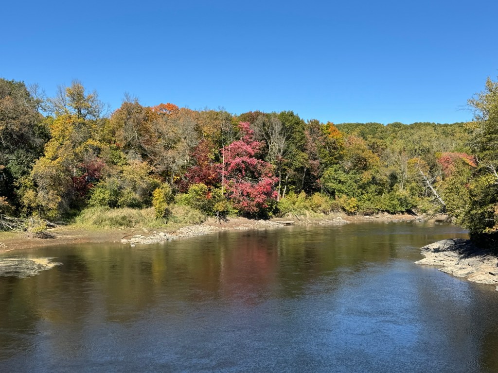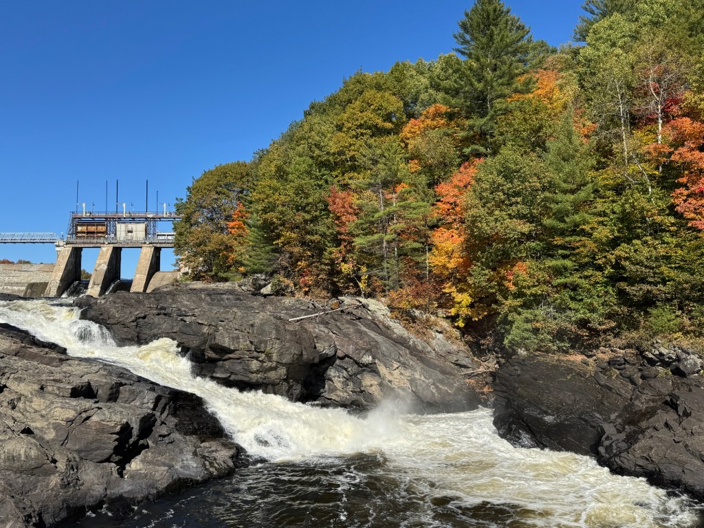 The colors are beautiful, the hike is easy, the views are spectacular. A dam built by the local beavers, the dam gushing water into the beautiful river, and let me repeat the fall colors!