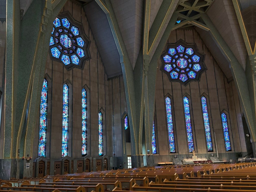 When this church became too small, they built a new church. Because of two miracles at the original church while they were building the new church, thus, it has become a pilgrim location in the province. It has very beautiful stained glass windows. We were not provided with more information and only had 10 minutes to walk around, The stained glass is memorable for the amount of windows and the colors made more vibrant with the sun.