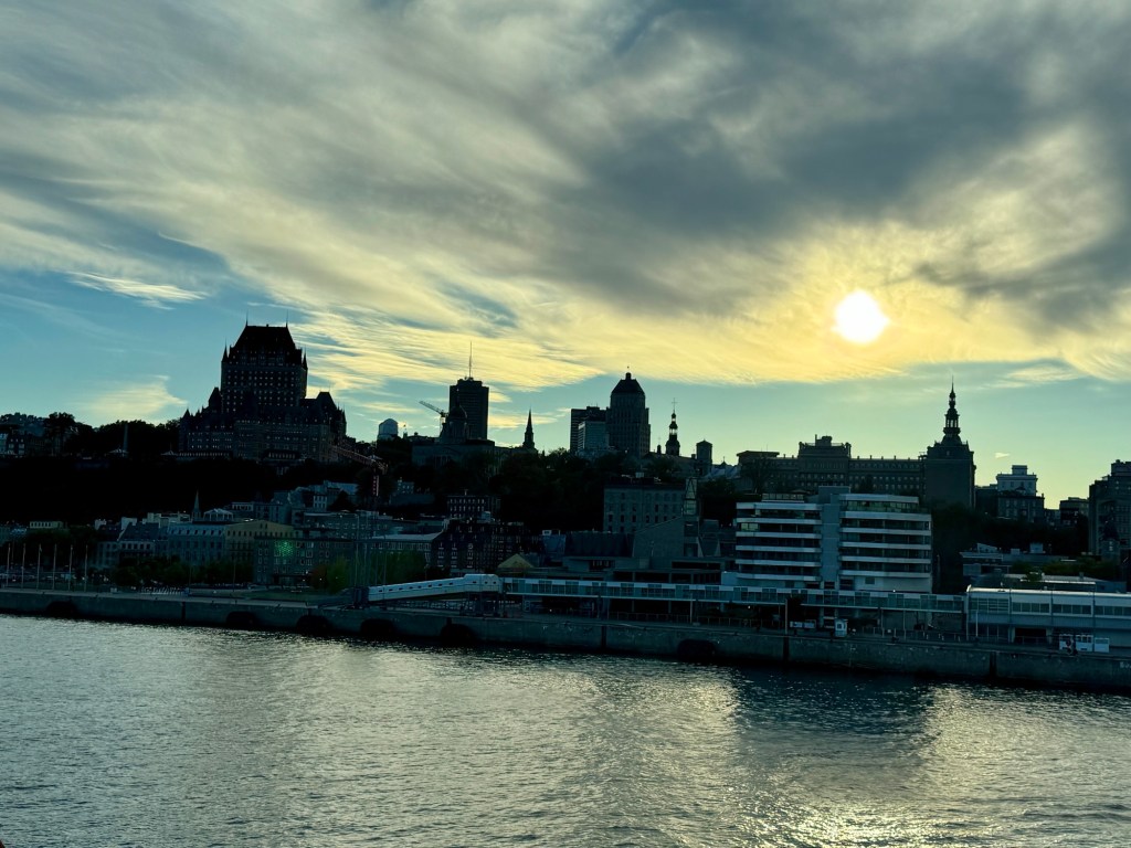 Back on the ship, we watch the city skyline fade as we continue sailing down the St. Lawrence River towards the ocean.