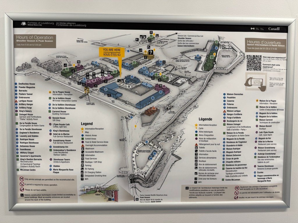 Today is the first day with clouds (but it clears later)! Our weather has been perfect and even today, it’s not raining. With the cooler weather, everyone is bundling up. Lots of history in Louisbourg located at the most eastern side of Nova Scotia on Cape Breton Island.