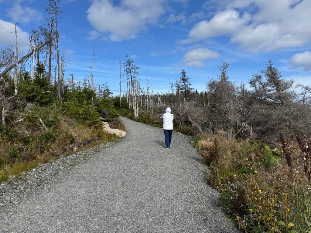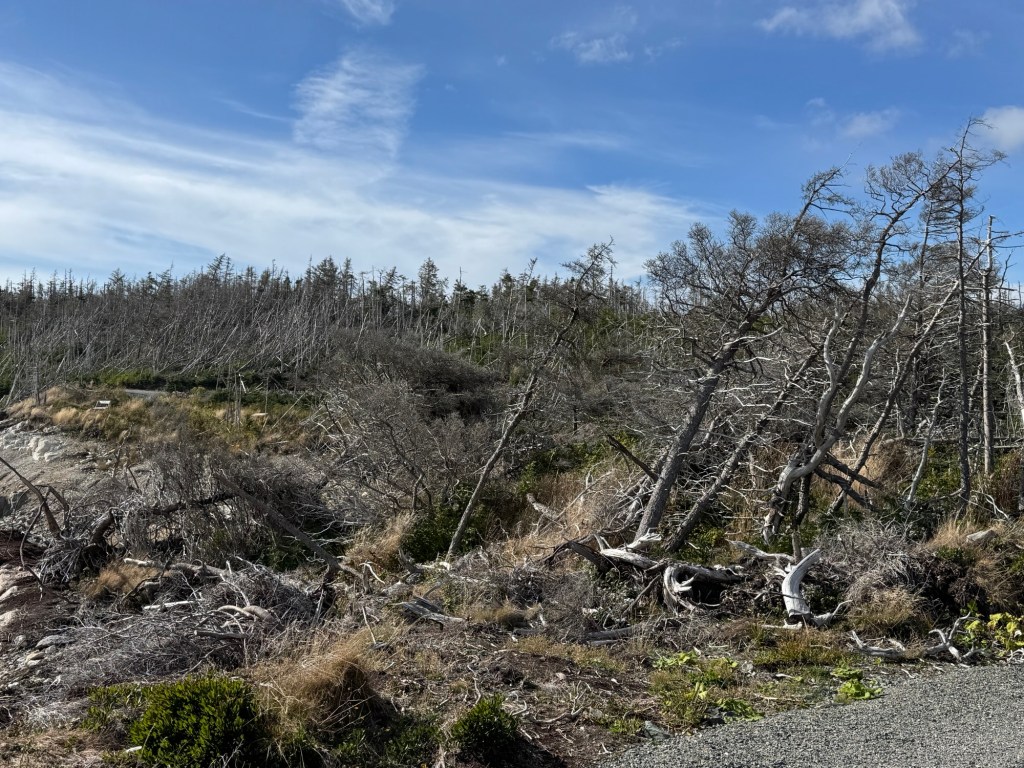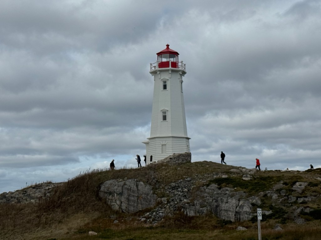 As the bus winds its way up to the lighthouse, we are told about the trees that are either dead or leaning over along the hillside. In 2022, Hurricane Fiona made a direct hit on this town and coast. It killed the trees, knocked many down, flooded the streets, and damaged many buildings. It was a rare occurrence and definitely made the residents appreciate what the US States that are hit by hurricanes have to deal with, especially the loss of power.