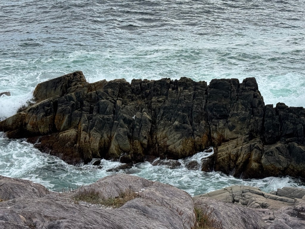 After visiting the fortress, our tour bus takes us to the famous lighthouse still working today. The second oldest location in North American with Boston having the first. This lighthouse has been rebuilt four times. This version was built in 1923 with recent renovations completed in 2024 as part of the centennial celebration. It sits on the north side of Cape Breton Island and is relied on by all ships sailing to Louisbourg harbor. The shoreline is quite rocky.