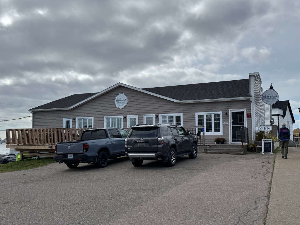 After the tour, we have some time before our hike on the Lighthouse Trail. A walk on the Main Street of Louisbourg on a Sunday is very quiet. The tour guide told us about a restaurant in town – Spoondrift Cafe. What a cute little cafe and friendly service! And the food was the best – seafood chowder (with lots of seafood) and a chocolate chip cheesecake. Yum!