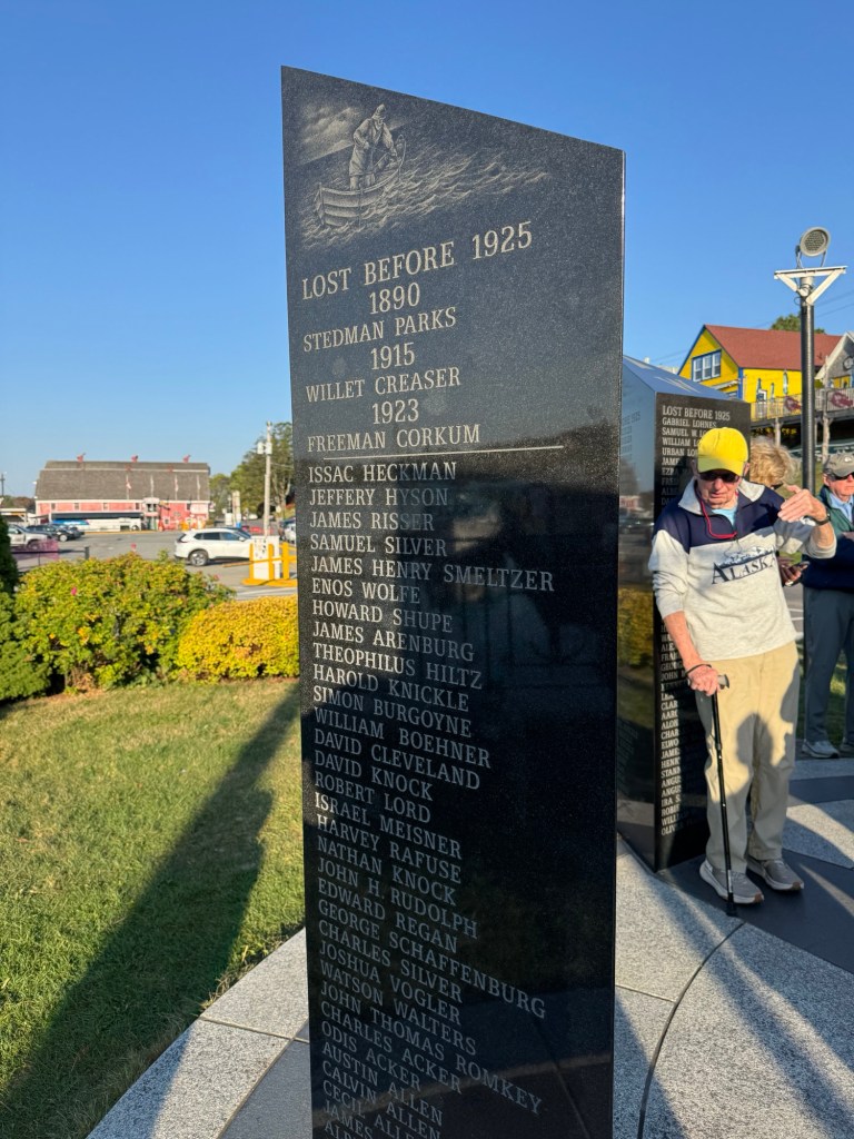 A veteran memorial is located up the hill to men who served. Down by the waterfront is a memorial to the many seafarers— the men and ships lost at sea – a lot of names and ships. Respect is deserved for their sacrifice to country and to be fisherman who sought a living by the sea.