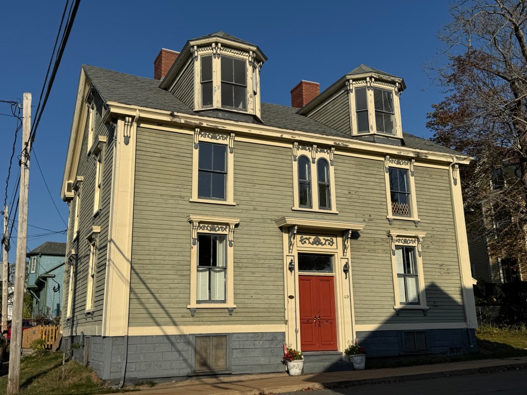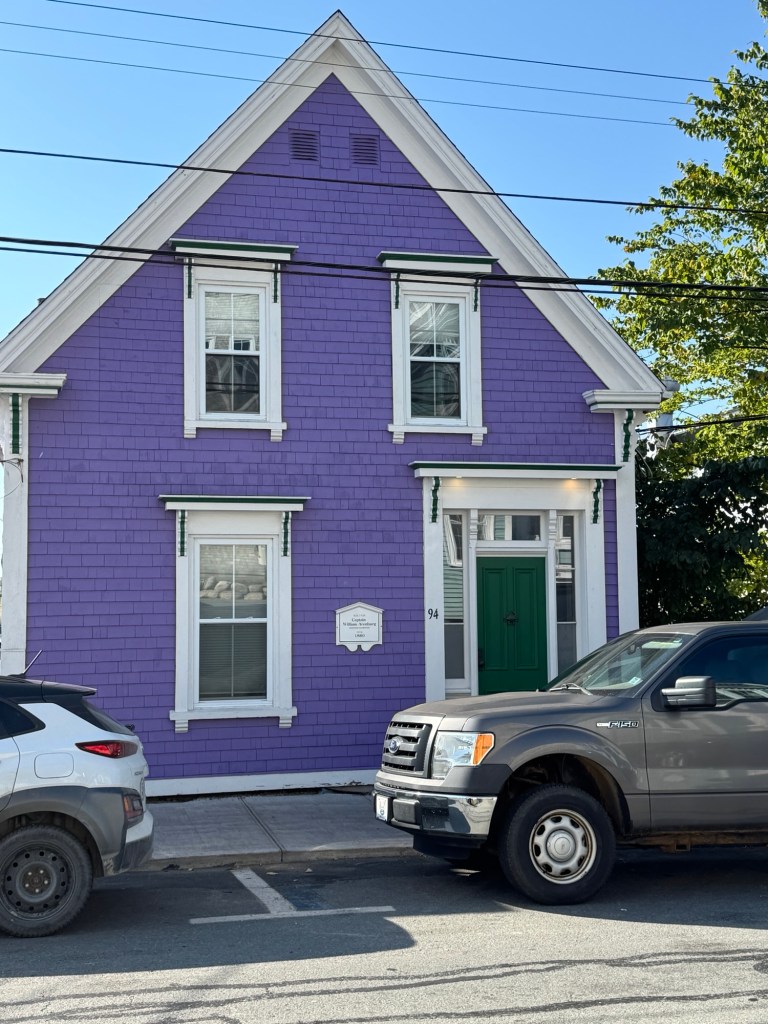 Lunenburg is known for its buildings painted in bright colors making it very interesting to walk around and see the wonderful historic architecture. That is exactly what we do this morning. The population is 2,400 and without the many tourists that take over in the summer months, it is a lovely quiet walk. These pictures are of the many homes and business.