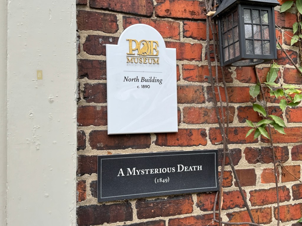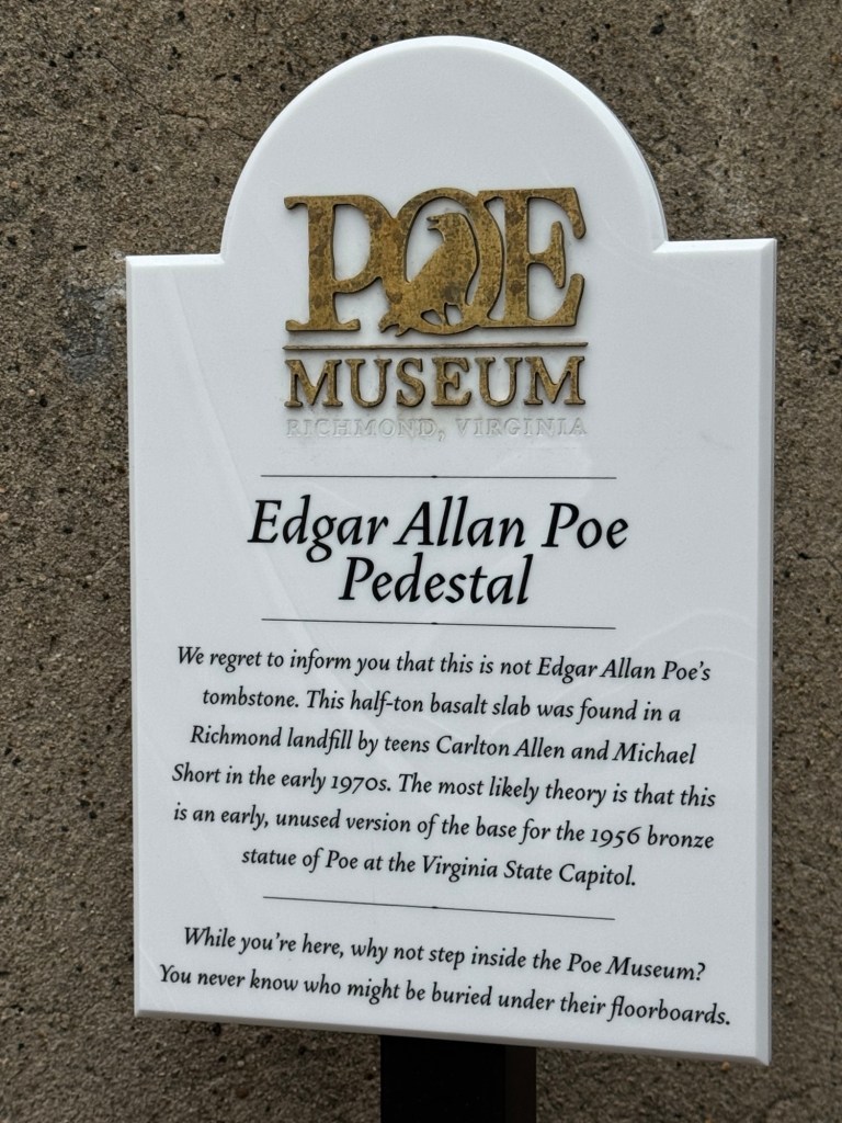 Today’s plan is to explore a couple of museums and then have dinner in downtown Richmond. Shirley and I somehow always start at the local Chico’s store where their 30% off everything in the store sale is underway. Damage done, off to the Poe Museum.