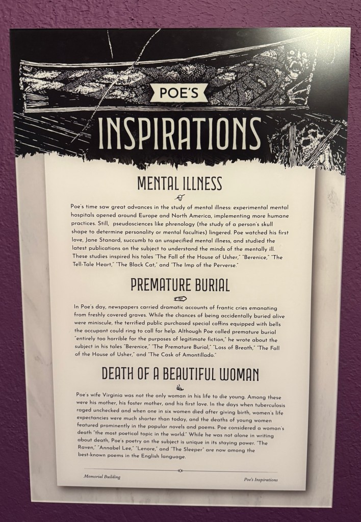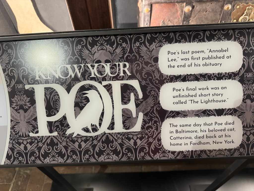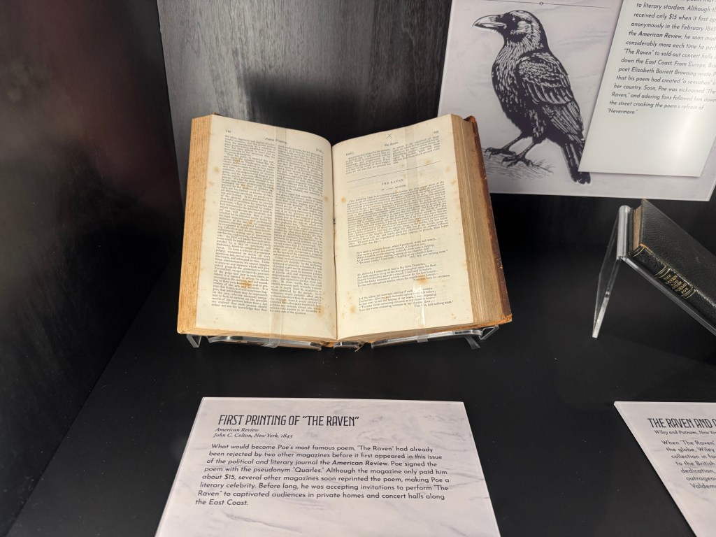 His life story is told in various exhibits and an audio via QR Code is available to describe the significance of the items in Poe’s life. If you are a fan, definitely worth a visit. Even if you do not know much about his life, this museum is also worth a visit.