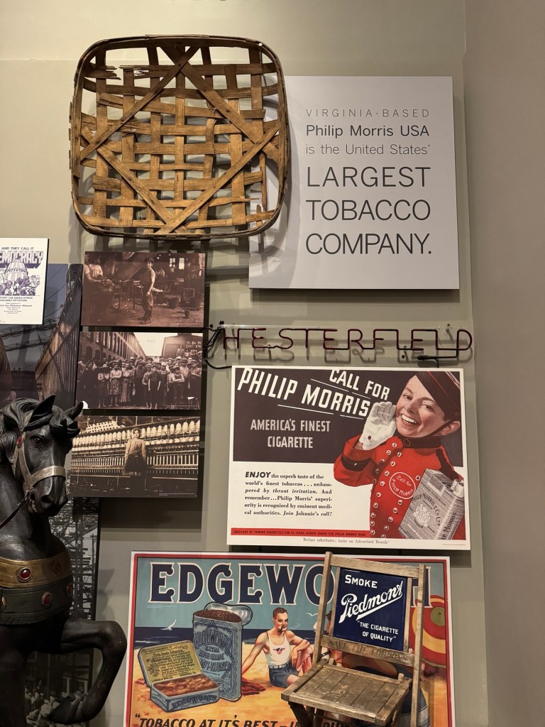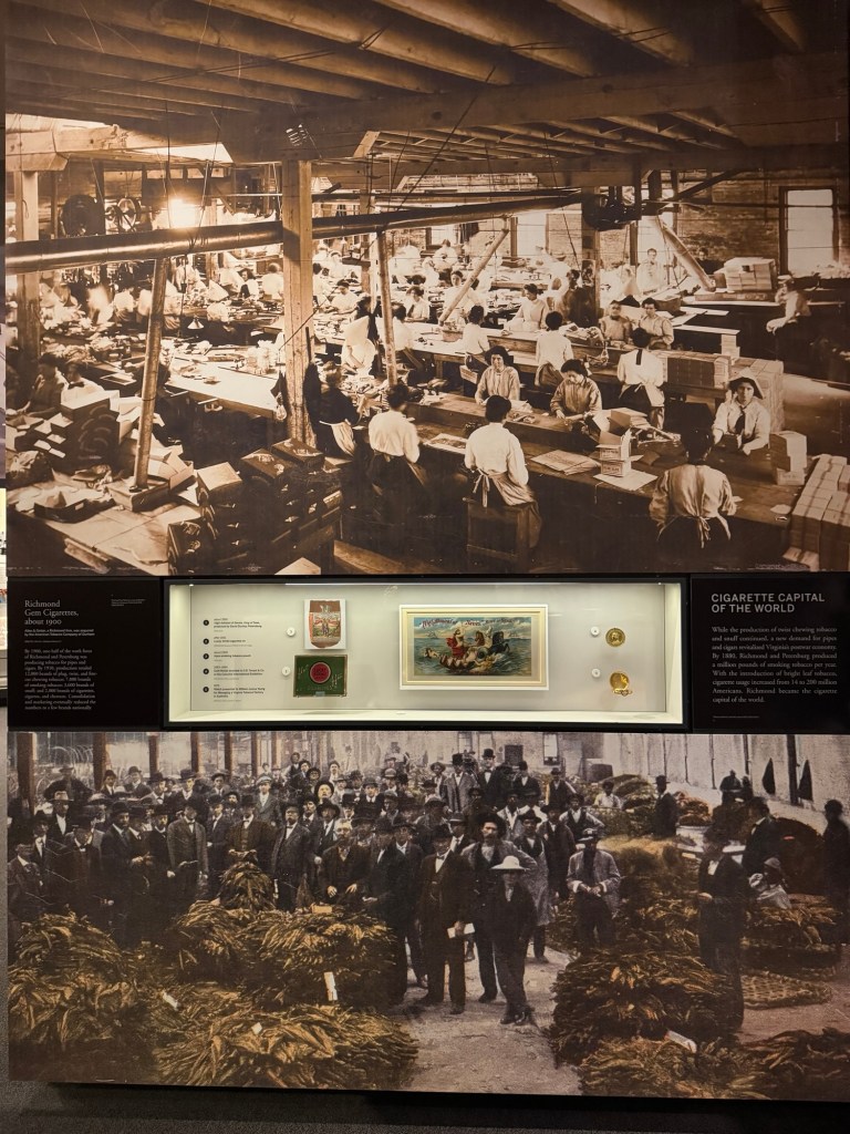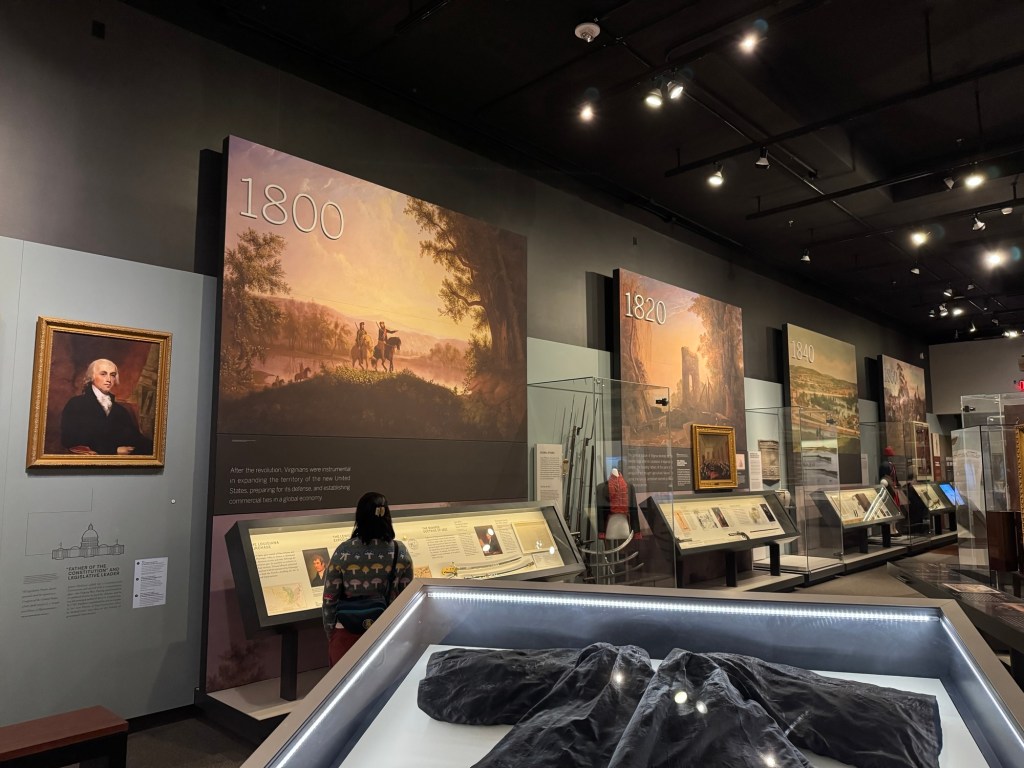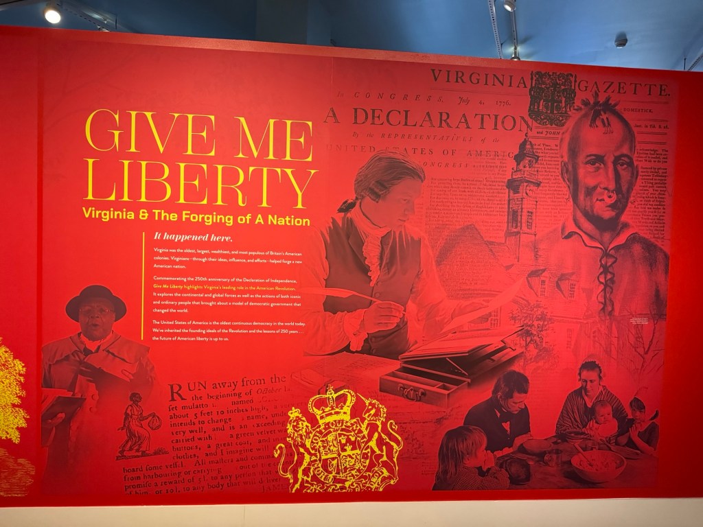Our time is limited in the museum so we focus on the current special exhibition about the history of Virginia’s involvement throughout the years since our country’s founding. An hour easily goes by as we explore the exhibits. Many original documents are on display telling the amazing history of this state’s involvement from the Revolutionary War, Civil War, the tobacco industry, and beyond. Quite a history lesson!