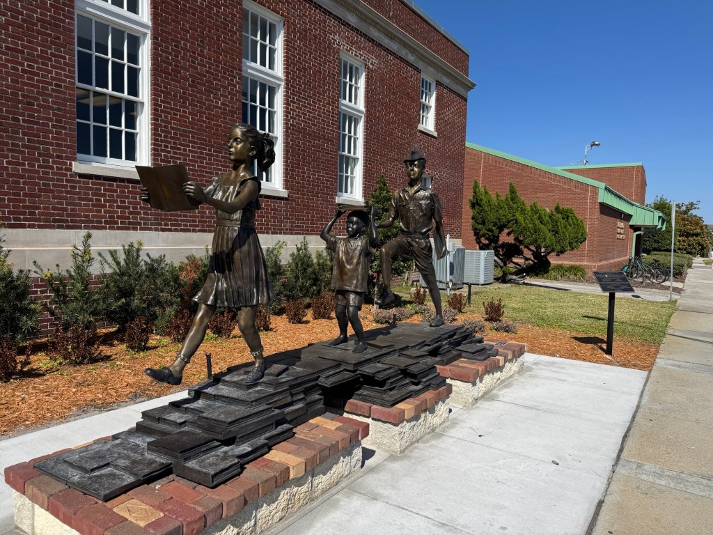 The buildings are anywhere from late 1800’s into the early 1900’s with signs indicating their history. The streets are paved with bricks. Fun to explore. There were also art sculptures and murals around the downtown district.