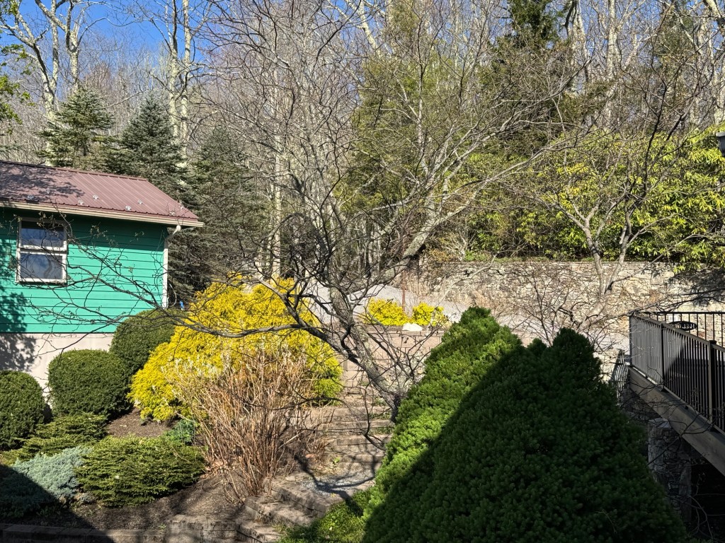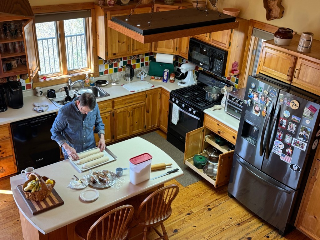 Arrived very late last night (early morning) and woke up to the sunshine streaming in. A beautiful, crisp morning with blue sky and lots of sunshine. Spring is blooming! Bird feeders are out and the baker is at work. The temperature this morning was a chilly 33 and is warming up to 62 this afternoon. No rain in the forecast so a burn order is in effect – just like Florida. A lovely, relaxing day ahead.